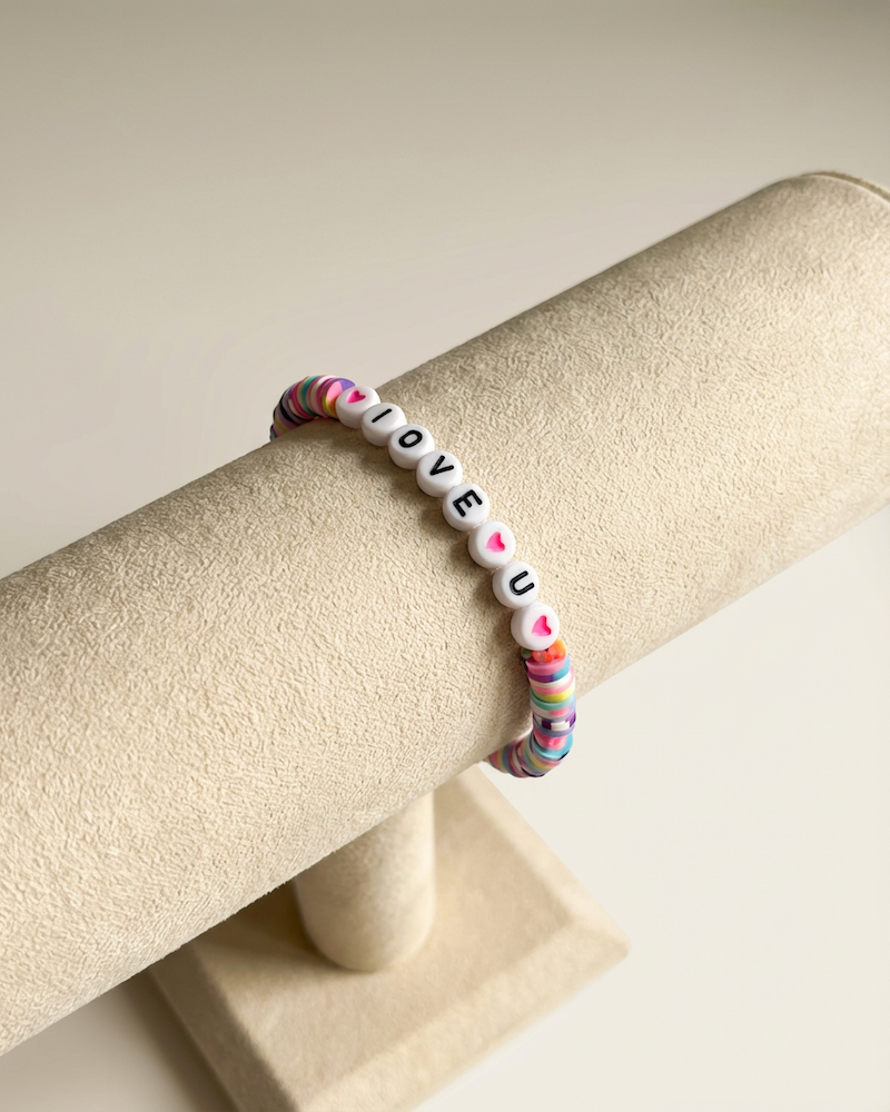 Nuestra pulsera artesanal está elaborada con cuentas mixtas de Heishi, combinadas con letras para formar el nombre o palabra especial que elijas. Es ligera, colorida y perfecta para llevar todos los días o regalar a alguien especial.